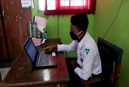 Ia diberi fasilitas khusus dari sekolah berupa laptop untuk mengerjakan PTS, mengingat di rumah tidak ada satupun handphone maupun laptop.