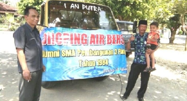 Dia mengatakan, bantuan itu bersifat spontan. Berawal dari interaksi via hand phone. Dia mencoba kontak Khayanto Utomo, S.IP, Murtono dan H. Subardi. Dibantu alumni SMA Pembangunan 3 Ponjong lainnya kegiatan droping air bersih dapat terlaksana.