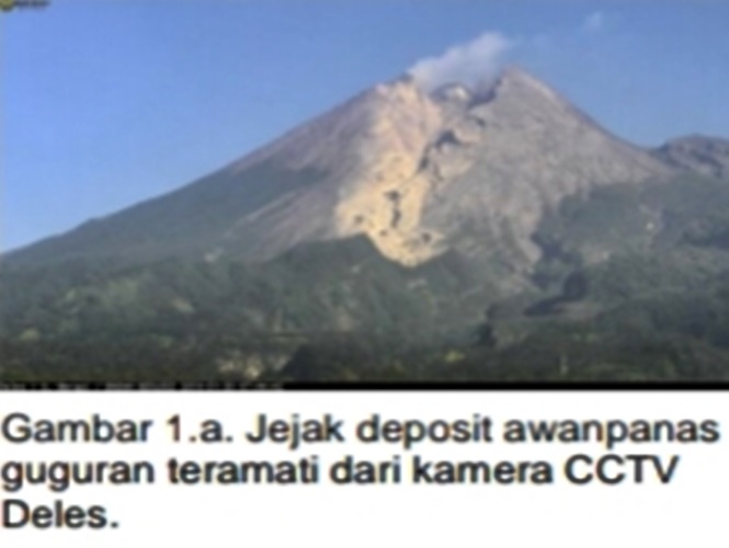 Awanpanas guguran pertama teramati pada pukul 20.17 WIB, jarak luncur 1400 m, durasi 141 detik terlihat pada ambar 1.b).