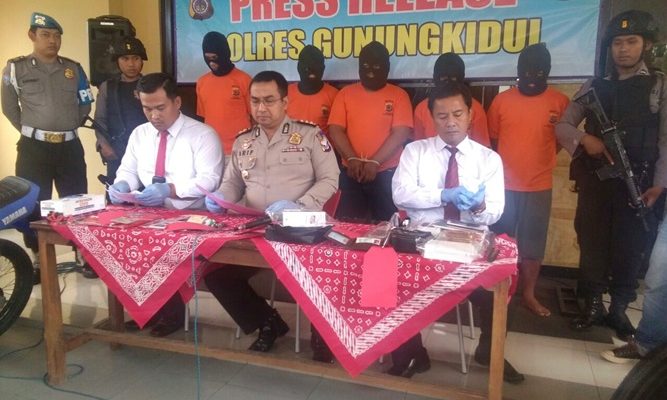 Empat pelaku diantaranya Tri 25, warga Rejosari, Semin, Wid 23, warga Karangsari, Semin, Ads 25, warga Desa Nglipar, Kecamatan Nglipar, Mur 25, warga Karangsari, Semin.