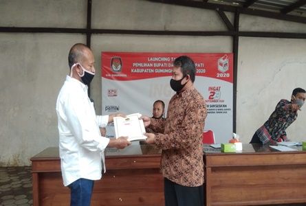 Bertempat di kantor KPU Gunungkidul, Anton Supriyadi-Suparno serta Kelik Agung Nugroho-Yayuk, menerima berkas yang dimaksud secara bersamaan.