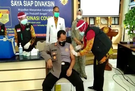 Sementara, Kapolres Gunungkidul AKBP Agus Setiawan turut menerima vaksin. Namun ia sempat terkendala hasil tensinya yang tinggi. Sesuai prosedur, calon penerima vaksin harus memiliki tekanan darah yang normal. Setelah beristirahat sebentar, tensi dicek kembali dan dinyatakan normal. Ia pun lantas turut menerima suntikan pertama dan menunggu 30 menit setelahnya untuk observasi.