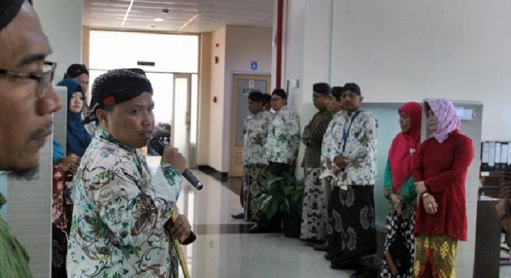 WONOSARI, Kamis Pon–Nuansa berbeda di lingkungan Kantor Pelayanan Pajak (KPP) Pratama Wonosari, Kamis (31/08). Seluruh pegawai nampak rapi berbusana Jawa khas gagrak Ngayogyakarta Hadiningrat. Dengan berbusana adat, pegawai KPP Pratama kemudian mendatangi wajib pajak dan instansi di lingkungan Pemkab Gunungkidul.