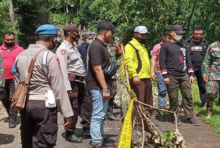 Bersama Dinas Pekerjaan Umum, Perumahan Rakyat dan Kawasan Permukiman (DPUPKP), Bupati Gunungkidul terpilih H. Sunaryanto melakukan tinjauan di lokasi talud jalan ambrol Senin, (01/02/2021).