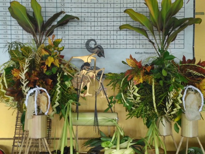 Pertama, gagar mayang, berisi berbagai dedaunan. Ini representasi suasana desa yang ditumbuhi berbagai tanaman.