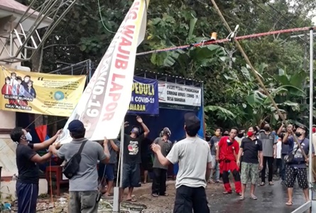 PLAYEN-SELASA PAHING | Buntut kesalahpahaman beberapa waktu lalu, posko Covid-19 di Desa Banaran, Kecamatan Playen, Kabupaten Gunungkidul dibongkar, Selasa (26/05/2020) pagi.