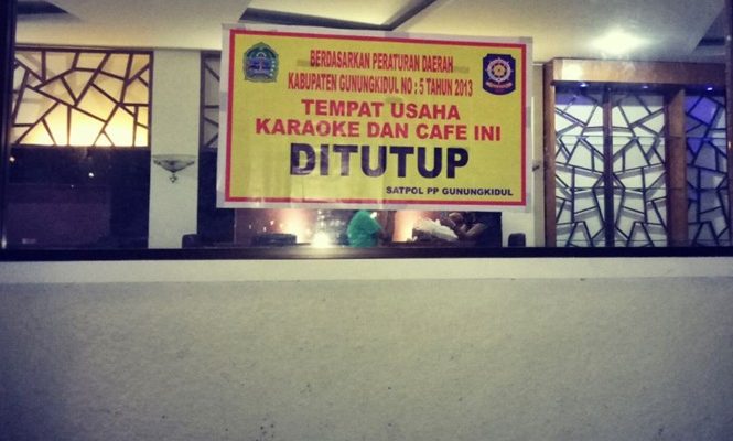 WONOSARI, Jumat Pon-Tindakan hukum (penyegelan) ruang karaoke hotel oleh Pemerintah Gunungkidul dalam hal ini Satuan Polisi Pamong Praja dengan alasan ruang karaoke itu tak berijin, adalah tindakan gegabah, bertentangan dengan Peraturan Mentreri Pariwisata Nomor PM.53 / HM 00I / MPEK / 2013 Tentang Standar Usaha Hotel.