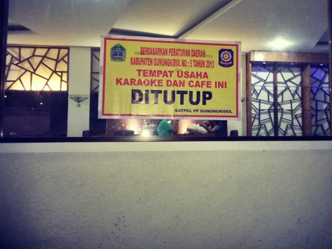 WONOSARI, Jumat Pon-Tindakan hukum (penyegelan) ruang karaoke hotel oleh Pemerintah Gunungkidul dalam hal ini Satuan Polisi Pamong Praja dengan alasan ruang karaoke itu tak berijin, adalah tindakan gegabah, bertentangan dengan Peraturan Mentreri Pariwisata Nomor PM.53 / HM 00I / MPEK / 2013 Tentang Standar Usaha Hotel.