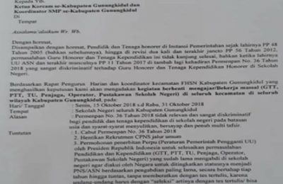 WONOSARI, KAMIS LEGI-Guru Tidak Tetap dan Pegawai Tidak Tetap (GTT/PTT) yang tergabung dalam Forum Honorer Sekolah Negeri (FHSN) Gunungkidul hari ini, Kamis (18/10),...