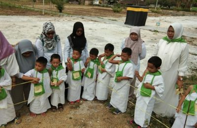 Puluhan Anak TK/KB Khalifah Kids Latihan Manasik Haji