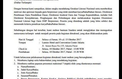 PONJONG, Senin Pahing-Duaratus Guru SMP se-Indonesia diundang ke Jakarta mengikuti gerakan deseminasi nasional literasi (GDNL). Gunungkidul diwakili tiga orang guru SMP...
