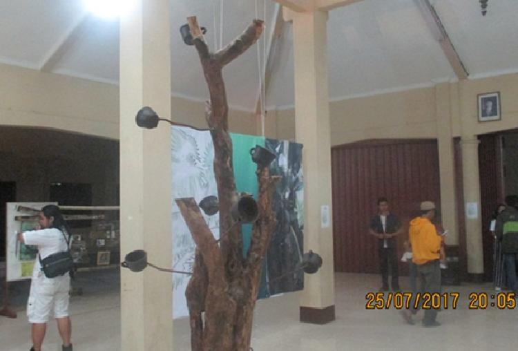 Tidak banyak yang menghampiri, meski pokok kayu setinggi 2 meter itu dipajang di depan pintu pameran di balai Desa Kepek 25/7/17 lalu.