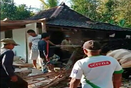 “Selain dapur rumah, kandang ternak juga ikut roboh,” katanya.