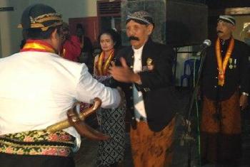 Sebelum membabar kelir, Ki Sugianto menerima wayang semar dari Sekretaris PLKJ pusat, Kanjeng Pangeran Suryo Nagoro.