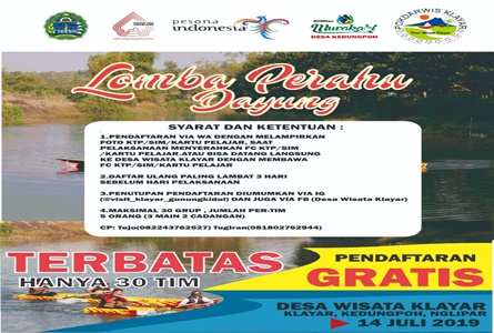 “Pendaftaran lomba dayung kano tidak dipungut biaya,” ujar Ki Wonopuro, sapaan akrab Dukuh Tejo, (5/7).