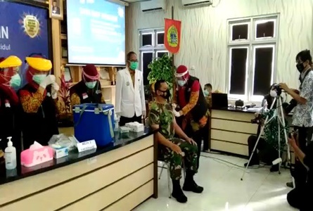 WONOSARI-KAMIS WAGE | Bertempat di RSUD Wonosari, Pemerintah Kabupaten (Pemkab) Gunungkidul melakukan Vaksinasi COVID-19 tahap pertama pada Kamis, (28/01/2021) ini.