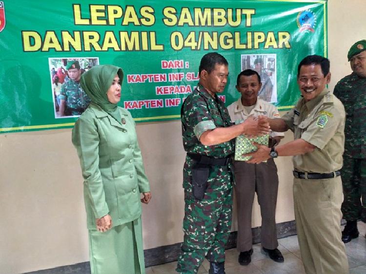NGLIPAR, Selasa Wage – Kapten Infantri Slamet Komadan Rayon Militer 04 Nglipar, digeser lokasi ke Rayon Militer 05 Ngawen, menggantikan Kapten Cba. Rubito. Dalam perpisahan dengan tokoh dan warga, Slamet menitikkan air mata.