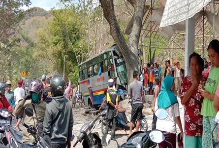 Akibatnya, bus oleng ke kiri dan menabrak pohon perindang jalan hingga bus ringsek pada bagian depan. Sementara, truk masih melaju tak terkendali, hingga jarak 600 meter dari TKP.
