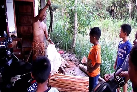 Berawal saat pemilik rumah mendengar suara gaduh di bagian penyimpanan gabah (padi) tak jauh dari dapur rumah Sumiyem.