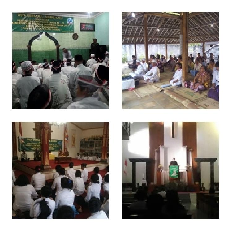 WONOSARI, Jumat Kliwon – Lantunan ayat suci Al Quran, kidung gereja, sloka umat Hindu hingga umat Budha bergema di segenap penjuru Kabupaten Gunungkidul. Seluruh elemen umat beragama berdoa demi kejayaan Bangsa Indonesia di usianya yang ke-72, Kamis (17/08).
