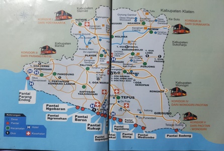 Dalam buku itu Team Penyusun menyebutkan bahwa ada lima pintu gerbang wisata masuk ke Kabupaten Gunungkidul.