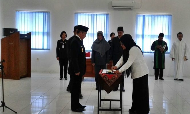 WONOSARI, JUMAT PAHING – 14 Aparatur Sipil Negara (ASN) dilingkungan Pemerintah Kabupaten Gunungkidul resmi dilantik. Pengambilan sumpah jabatan ASN di Aula Balai Diklat, Badan Kepegawaian Pendidikan dan Pelatihan Daerah (BKPPD) Gunungkidul, Jumat, (14/09).