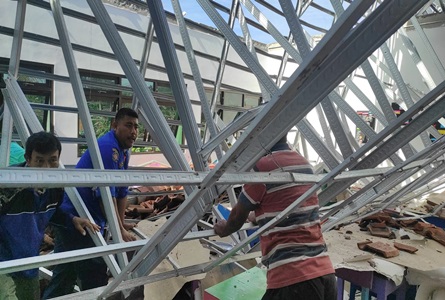 Kemungkinan, begitu laporan tersebut memperkirakan, rangka baja ringan tidak kuat menahan beban genteng sehingga atap ambrol.