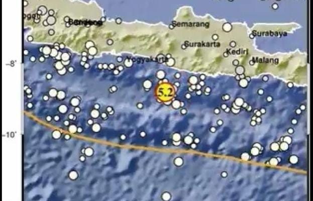 Gempa bumi Mag: 5.2, mengguncang Kabupaten Gunungkidul pada pukul 07:40 WIB.