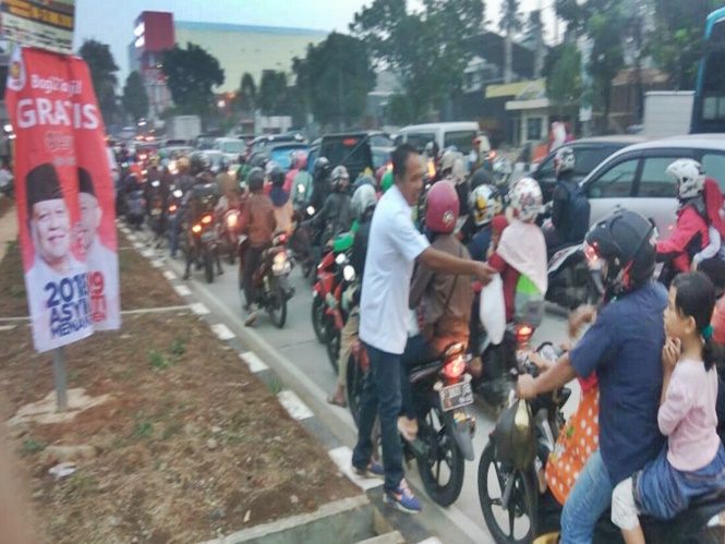Kegiatan pembagian takjil di perempatan lampu merah di tengah kemacetan ke arah Bubulak atau Perumahan Yasmin. Dalam pembagian santunan suasana begitu gembira, anak-anak yang rata-rata di bawah umur.