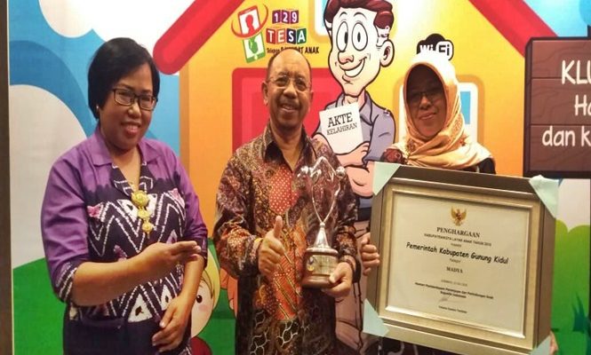 WONOSARI, RABU LEGI – Kabupaten Gunungkidul sabet satu prestasi lagi. Dalam acara Peringatan Hari Anak Nasional 2018 di Dyandra Convention center Surabaya, Senin (23/07) malam. Gunungkidul meraih anugerah Kabupaten Layak Anak (KLA) 2018 kategori Madya dari Kementerian Pemberdayaan Perempuan dan Perlindungan Anak (Kemen PPPA) RI.