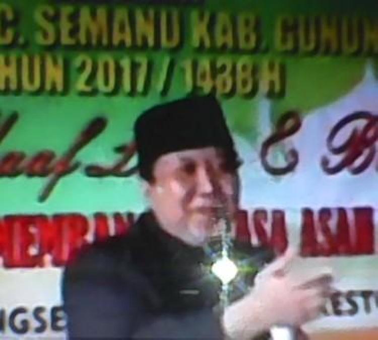 “Bung Karno pusing karena ulah para pentholan partai. Kiyai Wahab Abdullah menyarankan, agar para ketua partai diajak berkumpul. Agenda utama bukan rekonsiliasi, tetapi halal bil halal. Dijamin mereka mau datang karena belum pernah mendengar istilah tersebut,” ujar Gus Arifin di seperempat ceramahnya.