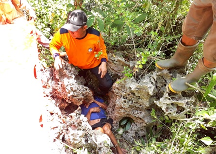 Tim SAR yang mendapatkan laporan tersebut kemudian melakukan evakuasi ke lokasi penemuan. Korban ditemukan disebuah lubang bebatuan, saat ditemukan korban menggunakan kaos berwarna biru dan celana pendek berwarna hitam.