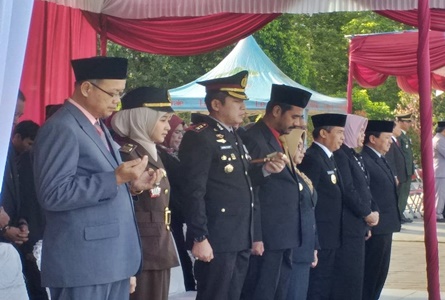 Sambutan tertulis dibacakan Komandan Kodim 0730 Gunungkidul, Letkol Inf. Noppy Laksana Armiyanto SH di alun-alun Pemda, selaku inspektur upacara (1/6).