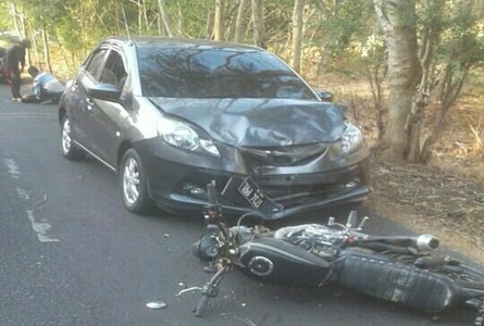 “Kecelakaanpun terjadi. Pengendara sepeda motor menghantam mobil hingga ringsek bagian depan mobil,” jelasnya.