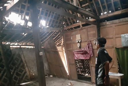 Akibat terpaan angin yang cukup kencang dan usia bangunan yang sudah tua, di salah satu sisi rumah patah pada bagian pilar.
