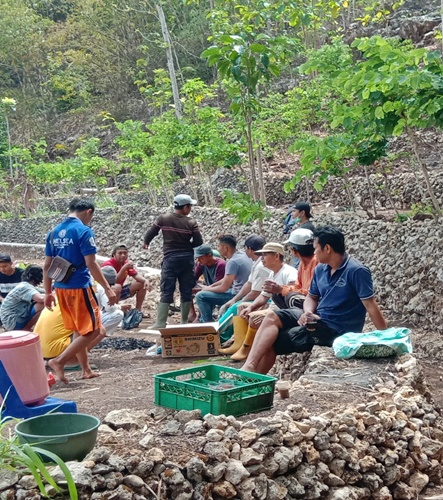 Bambang Girianto membaur ke masyarakat bergotongroyong membangun jalan sembari mengirim 5 tanki air bersih. Slamet S.Pd. MM, kerjabakti menaikan air dari Luweng Buntet di Padukuhan Widoro.
