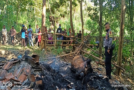 GUNUNGKIDUL, – Kebakaran terjadi di Alas Tumbak, Dusun Warak RT 09/02, Desa Girisekar, Kecamatan Panggang, pada Kamis (07/05/2020). Kandang sapi berikut 3 hewan ternak ludes terbakar.