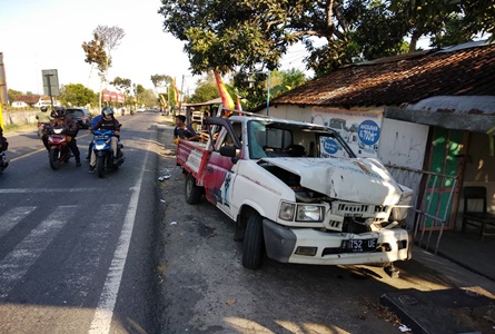 Tak berhenti disitu, akibat dorongan cukup kuat, membuat kendaraan Wardani pun menabrak pickup bermuatan ayam yang dikendarai Gunawan (30) warga Sitimulyo, Piyungan Bantul.