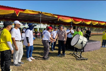 Bupati membuka Kejurkab drumband 2023 dengan memukul bass.