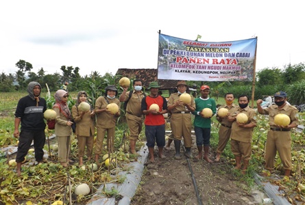 Mustofa mitra poktan Ngudi Makmur menyampaikan laporan, lahan yang diusahakan untuk tanaman melon seluas 1 hektar. Dia memperkirakan panen bulan November 2020 sebanyak 30 ton.