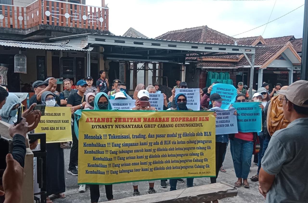 GUNUNGKIDUL – RABU PON |Kejadian demo nasabah investasi bodong Koperasi Bahana Lintas Nusantara (BLN) Dynasty Nusantara, di depan rumah Ketua Koperasi BLN Cabang Gunungkidul, Padukuhan Ngrebor, Kalurahan Piyaman, Kapanewon Wonosari, Kabupaten Gunungkidul, Senin (28/07) sore, menjadi pelajaran berharga, sekaligus mengingatkan masyarakat, untuk selalu berhati-hati, dan selektif dalam berinvestasi.