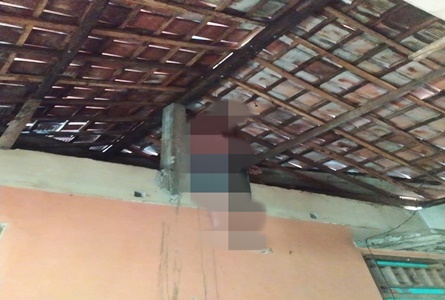 Mereka menengok ke dapur namun tidak menemukan apapun. Saksi 2 mencoba mengamati situasi sekitar. Ketika menengok ke atas melihat korban dalam posisi menggantung dengan tali terikat di suwunan rumah.