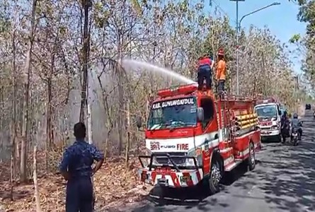 Kepala Penanggulangan Bencana Kebakaran (PBK) Kabupaten Gunungkidul Handoko menjelaskan, kebakaran tersebut bermula dari pembakaran sampah daun jati yang melebar.