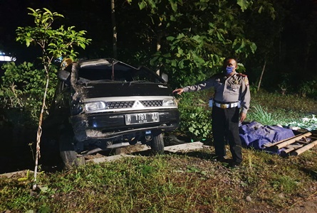 “Menyebabkan mobil hilang kendali, oleng, dan terperosok ke talut jalan,” terang Kapolsek.