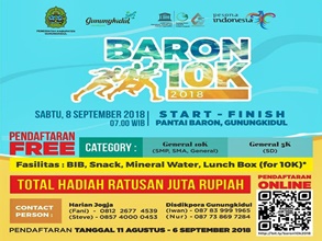 TANJUNGSARI, SENIN LEGI – Kegiatan tahunan lomba lari Baron 10K akan kembali diselenggarakan di kawasan Pantai Baron, Desa Kemadang, Kecamatan Tanjungsari, Sabtu 8 September 2018 mendatang. Hadia yang disediakan cukup menggiurkan.