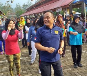 Suharno, SE, Politisi Nasdem pun langsung berbaur di antara ibu-ibu. Hari ini kita difasilitasi pengeras suara, kata Suharno yang diberi kewenangan menyerahkan bantuan. Lain hari kemungkinan menyusul seragam senam.