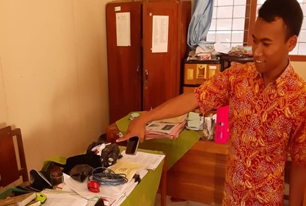 Karena curiga telah terjadi tindakan pencurian, Ia kemudian mengecek barang-barang di ruangan tersebut. Setelah dicek, sejumlah barang sudah tidak ada di tempatnya.