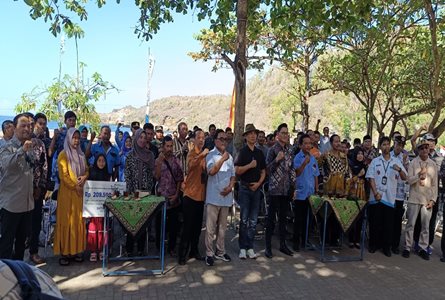 Selain Bupati Gunungkidul H. Sunaryanta beberapa pejabat dan tamu undangan tampak hadir antara lain, Kepala Dinas Kelautan dan Perikanan M Johan Wijayanto, Panewu Tanjungsari, Nelayan, dan Penyuluh Pesisir serta Poklasar. (Margaret)
