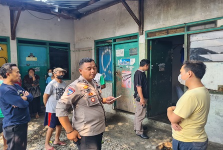 Pada sepeda motor itu ada 2 bungkus makanan tergantung di motor. Sementara pintu kamar korban tertutup.