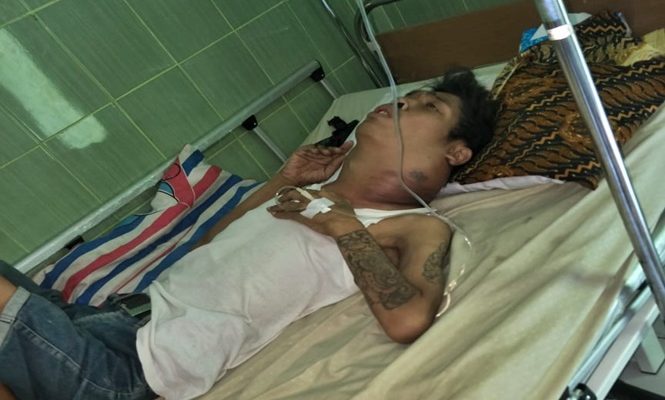 Di Puskesmas II Tepus Wasono dijaga oleh kedua orang tuanya. Sambil mengerang menahan sakit Wasono lelaki beranak satu ini berusaha menjawab pertanyaan awak media.